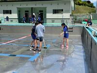 全校児童で作業を分担し,プールサイドやプールの中,更衣室,トイレなどの清掃を行いました。約1年分の汚れを落とすのは大変そうでしたが,協力しながら隅々まで掃除をし,きれいにすることができました。全校児童の頑張りのおかげで,今年も楽しくプールでの学習ができそうです。