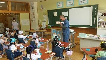 5月23日,歯科校医の佐藤晶先生においでいただき,歯科検診を実施しました。いつも通り丁寧に検診していただき,3時間ほどで全児童を終えることができました。検診後は1年生と一緒に給食を食べながら,食べる姿勢や,噛むことの御指導をいただきました。