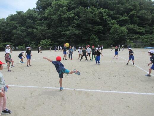 5月27日(月)昼休みに,今年度最初の縦割り遊びを実施しました。各班に分かれて6年生児童の企画した,鬼ごっこや,色鬼,ドッジボールなどの遊びを楽しく行いました。