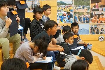 4年生に向けて,カキ養殖体験オリエンテーションを実施いたしました。今年度より3年間の体験を経て,唐桑の基幹産業であるカキ養殖の一連の流れを学びます。子供たちは,畠山政也さんのお話に目を輝かせ,これからの新しい学びに興味津々の様子でした。4年生は今年度6月27日(木)に,種挟み体験を行います。