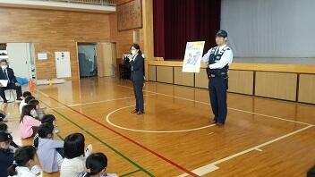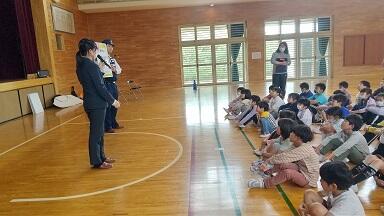 5月29日(水),朝の活動で不審者対応避難訓練を行いました。子どもたちは放送を聞いて,落ち着いて,迅速に避難できました。1校時は1・2年生が不審者対応安全教室を実施しました。不審者についてや不審な人に声を掛けられたときの対応の仕方について,気仙沼警察署生活安全課,唐桑駐在所員の方々をお迎えして学びました。講義やロールプレイングを通して,改めて,「いかのおすし(ついて「いか」ない,他人の車に「の」らない,「お」お声を出す,「す」ぐにげる,「し」らせる)」を確認しました。