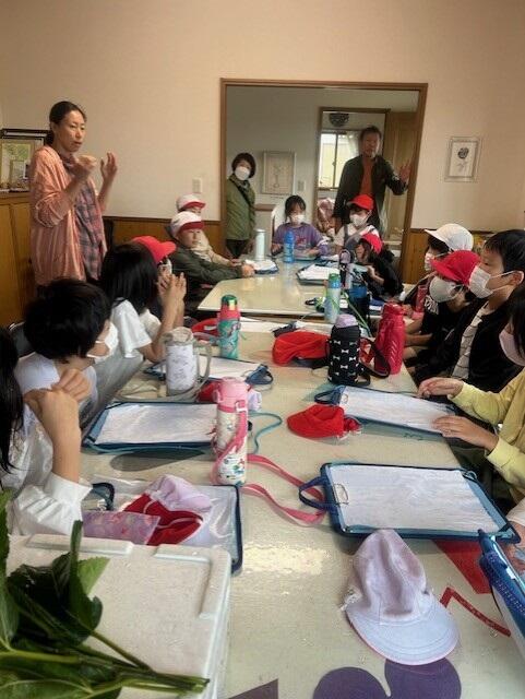 3年生が「海と生きる探究活動」の学習で,大唐桑の畑を見学しました。子どもたちは大唐桑栽培愛好会の方による説明を興味を持って聞いていました。また,大唐桑を使ったお茶やうどんなどの試食もさせていただきました。