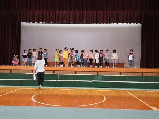23日の学習発表会児童公開,26日の一般公開に向けて,各学年での練習が進んでいます。一年生の練習をのぞいてみました。一年生は国語教科書の題材「サラダでげんき」の劇を発表します。一人一人のせりふあり、歌ありの楽しい発表となるよう、練習に取り組んでいました。