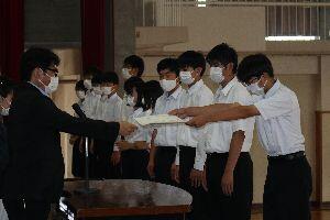 ◆その後,陸上と水泳で県大会へ出場する選手に向けての壮行式,そして,数学検定合格者への合格証の授与がありました。