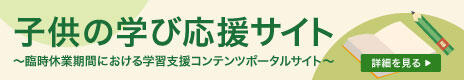 臨時休業期間における学習支援コンテンツポータルサイト(子供の学び応援サイト) 新型コロナウイルスに伴う臨時休業期間における学習支援コンテンツについて紹介しています。https://www.mext.go.jp/a_menu/ikusei/gakusyushien/index_00001.htm