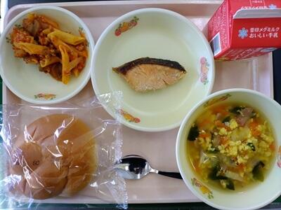 ミルクパン 牛乳 さけのみそマヨネーズやき ペンネのトマトに たまごとチーズのスープ
