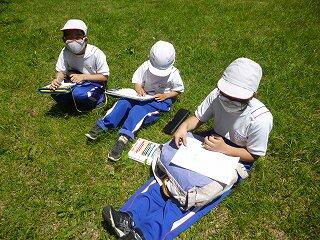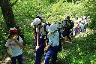 5月26日(水),天候に恵まれ,1年生と6年生が元気に安波山登山に行ってきました。1年生の子どもたちも,6年生のお兄さん,お姉さんにお世話をしてもらい,細い道や険しい道でも大きなけがをすることなく,楽しく歩くことができました。山頂では班ごとに,眺めを楽しみながらスケッチをしたり,ゲームをして遊んだり,お弁当やおやつを食べたりするなどして,とても楽しい時間を過ごすことができました。