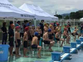 写真は,夏休み中に行われた,市内水泳大会,宮城県小学生陸上競技交流大会の様子です。