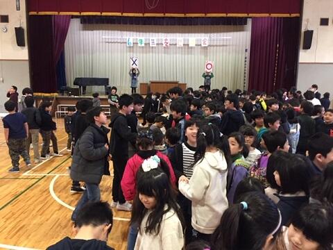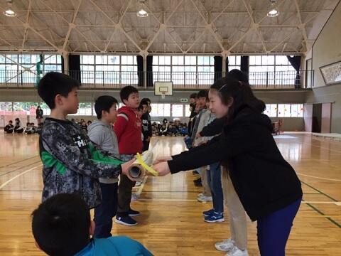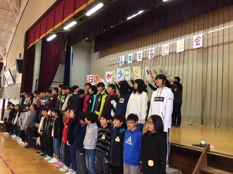 1年生から5年生までの全員で,招待状,プレゼント,6年生へのメッセージカードの作成,会場の飾り付けなどを分担し,そして,各学年の演技で6年生への感謝の気持ちを表しました。「やさしく声を掛けてもらい,ありがとうございました」「給食の重い荷物を持ってもらい,うれしかったです」下級生から6年生への感謝の気持ちが込められていました。 6年生から委員会活動の引き継ぎが行われ,児童会のバトンが5年生に渡されました。6年生の子どもたちが最上級生として頑張ってきたことが,今日の心温まる6年生を送る会となりました。