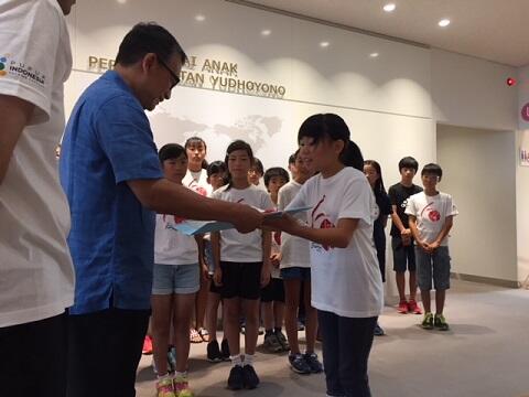 8月5日(日),気仙沼市図書館にお出でいただいた大使に,子どもたちから6月23日に「インドネシア日本国交樹立60周年記念コンサート」に招待いただいたことに対して御礼のメッセージをお贈りしました。子どもたちから大使へコンサートの時の思い出やご招待いただいたことに対する感謝のことばとともに,子どもたちが手作りしたメッセージを差し上げました。
