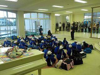5年生が野外活動で国立花山青少年自然の家に出発しました。今朝の気仙沼地方は雨が降っており,出発のつどいをホールで行いました。1日目は,栗駒山登山,星座観察会が予定されています。