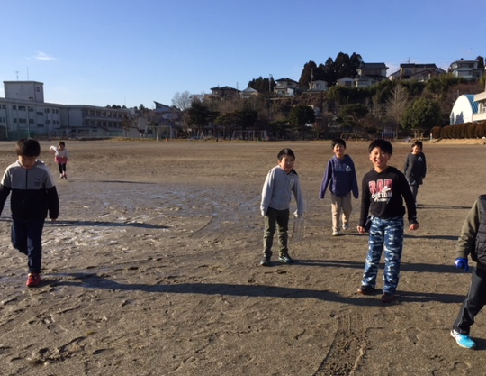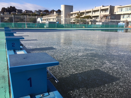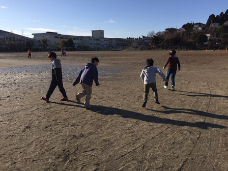 昨年12月にも一時氷が張りましたが,大寒に向かうこの時期らしい寒さでプールも校庭もカチコチです。それでも,子どもたちは元気に鬼ごっこです。