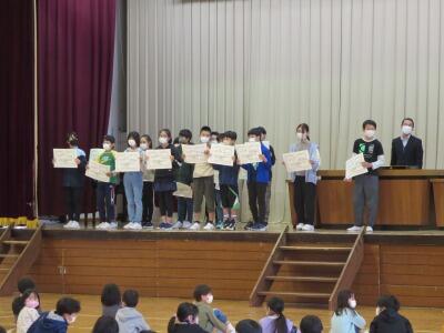 6月7日は,朝会が行われ,過日開催された各種大会で活躍した児童に賞状が伝達されました。市立小学校体育祭では,14種目中11種目に入賞し,ほとんどの児童が自己記録やチーム記録を更新しました。また,石巻市で開催された陸上競技大会に参加した児童の中には,県大会の出場権を獲得した児童もおりました。更に,フェンシングの東北大会に出場し,優勝した児童もおりました。賞状伝達の後,賞状を手にした6年生の代表が心境を発表し,「これからは,自分のもっている力を最大限に発揮できるように,いろいろなことに挑戦したいです。」と,発表を結びました。頼もしい児童たちに心から拍手を送り,今後の活躍を期待したいと思います。