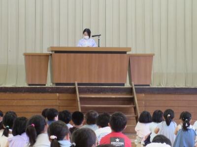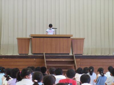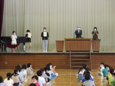 6月20日は,業前の活動として,全校集会を開き本年度のプール開きを行いました。プール開きに先立ち,気仙沼陸上競技大会で入賞した3名の児童に賞状が伝達されました。プール開きは,運動委員会の6年生が進行を務め,校長先生からコロナ禍を踏まえて,プールを活用した楽しい学習が始まることが伝えられました。その後に,体育主任からプールを活用するうえでの留意点が確かめられました。最後に,児童代表2名がプールを活用しての学習の抱負を発表しました。児童一人一人が,目標に向かって心と体を鍛え,たくましく成長できるように支援いたします。
