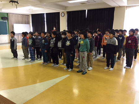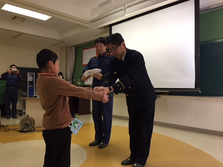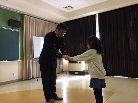 後半,バッジの返納,修了証の授与があり,誓いの言葉を全員で唱和しました。気仙沼警察署の三浦署長さんから「学んできたことを家庭で話し合ってほしい」とのお話をいただき,子どもたち一人一人の胸に刻まれた時間となりました。