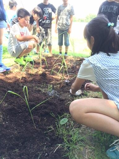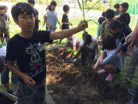 プランターで育ててきましたが,いよいよ露地栽培です。今日,5年生の子どもたちが花壇に植え替えをしました。