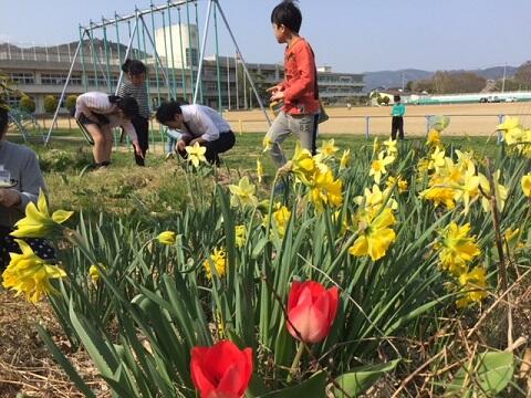 2年前に旧図書館の解体に当たり,3年生の子どもたち(現5年生)が旧図書館の敷地内にあったスイセンを移植しました。新しい図書館が開館し,移植していたスイセンを表土とともに元の場所に戻すワークショップを5月末に行います。
