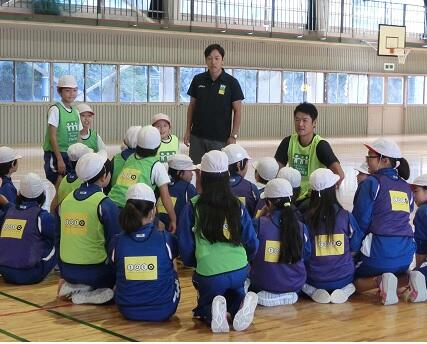 当日は、5年生の子どもたちが、体を動かすゲームをしたり、バレーボール選手になるまでのお話をうかがったりしました。