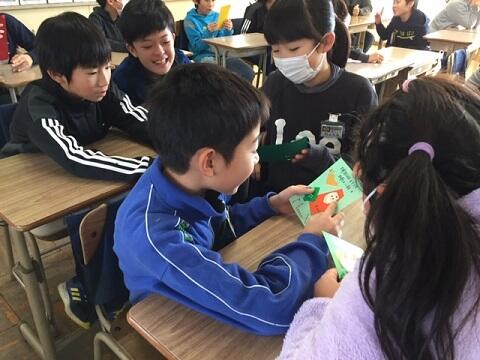世界各地,日本各地からクリスマスカードがプロジェクトに届き,プロジェクトの皆様が被災地の子どもたちの数に合うように袋に入れて送ってくださいます。海外の方々は,震災の記憶を風化させないためにも,被災地の仲間と今も親しくつながっていることは非常にありがたいことと感謝し,心を込めてクリスマスカードを書いてくださるそうです。直接会うことはありませんが,送っていただいたクリスマスカードを通して,多くの皆様の心に触れることができます。クリスマスカードを手にした子どもたちもうれしそうでした。