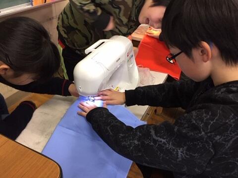 6年生は,家庭科のトートバッグ作りです。ミシンを使って丁寧に縫います。真剣です。