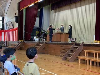 式では最高学年となった5年生が1~4年生のお手本となり,それを見習って式に臨む1~4年生の姿が見られました。各学年の代表児童の返事や修了証書を受け取る姿勢,代表児童とそろえて礼をする子供たちの姿はとても立派で,子供たちの1年間の成長を感じることができました。また,2名の児童が1年間の振り返りを発表しました。