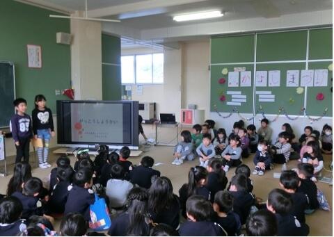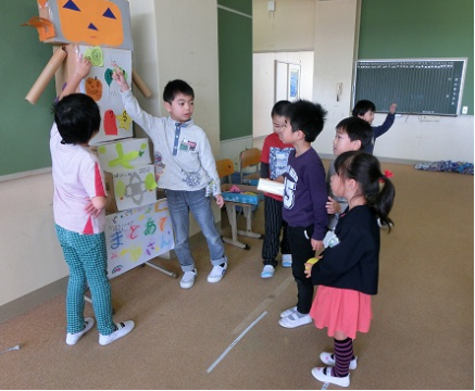 手作りのゲームを用意したり、いっしょに飾り物を作ったり、楽しいひとときを過ごしました。小学校では一番小さい1年生ですが、この日は、りっぱなお兄さん、お姉さんでした。来年入学する園児たちも「早く小学校に行きたいなあ。」と思ったことでしょう。