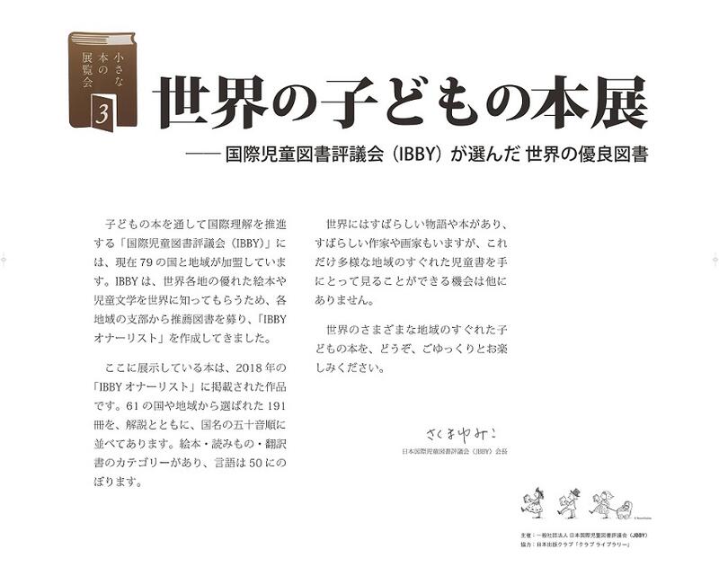 世界中のすばらしい物語や本,すばらしい作家や画家の描いた児童書を直接手にとって見ることのできる,貴重な機会ですので,是非ご覧になってください。