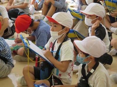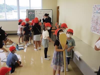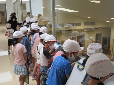 9月13日は,2年生が生活科の校外学習で中央給食センターを訪問し,センター内を見学するなどの体験学習をしました。児童は,調理室などの様子をガラス越しに見学した後,調理に使われている大きな用具3種類を手に持って大きさや重さを体感しました。この日のメニューの一つに呉汁があり,大きな鍋一つで呉汁が千人分できることを知り,児童はみんな声を上げて驚いていました。また,栄養士さんから出されるクイズを考えたり,見聞したことをメモしたりして給食ができあがるまでの様子を体験的に学ぶとともに,中央給食センターの皆さんの御苦労や工夫を知ることができました。