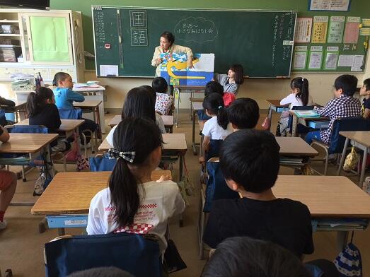 業前活動の読書の時間に「あいの会」の皆様が低学年の学級を中心に読み聞かせをしてくださっています。今日は,今年度初めての「小さなお話会」です。大型絵本を使っての読み聞かせ,車座になっての読み聞かせ……子どもたちの目が輝いています。