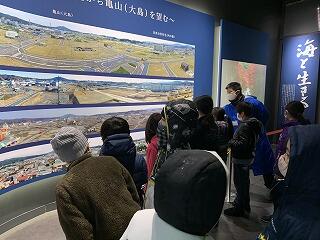 12月17日(木)に4年生が震災伝承館の見学に行ってきました。伝承館では,震災前と震災当日の気仙沼の様子が分かる映像を見た後,気仙沼向洋高校の旧校舎を見学しました。見学の際には,津波の力がどれほどのものだったのかを語り部の方に説明していただきました。