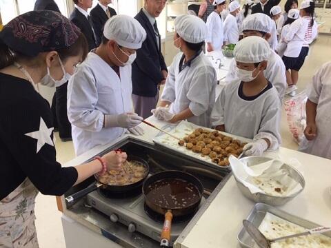 鮭ワカメご飯,メカら揚げ(メカジキの唐揚げ),フカヒレ入り餃子,海苔とホタテ入り厚焼き卵,茶豆入りポテトサラダ,フカヒレスープ,イチゴ果肉入り寒天ゼリーの豪華メニューです。今回も,割烹「世界」の坂本様にメニューづくりから調理指導まで全面的に御支援いただきました。お陰様で,素敵な気仙沼弁当が完成しました。本当にありがとうございました。