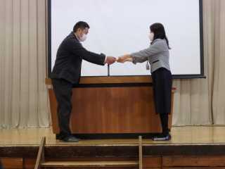 12月11日(月)の業前に,気仙沼小学校開校150周年の記念品贈呈式を行いました。贈呈式では,気仙沼小学校父母教師会から,ワンタッチテント2張りを寄贈していただきました。学校行事等で大切に使わせていただきたいと思います。