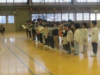 出し物では1年生は「子犬のマーチ」の合奏,2年生は「アリゴリズム体操」,3年生は「リメンバー・ミー」の歌,4年生は「茶色のこびん」の合奏,5年生はYOASOBI withミドリーズの「ツバメ」のダンスを行い,6年生に感謝の気持ちを伝えました。また,6年生からお返しにダンスと縄跳び等の演技が行われ,最後にはみんなで「また会おう」を合唱しました。
