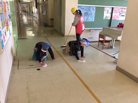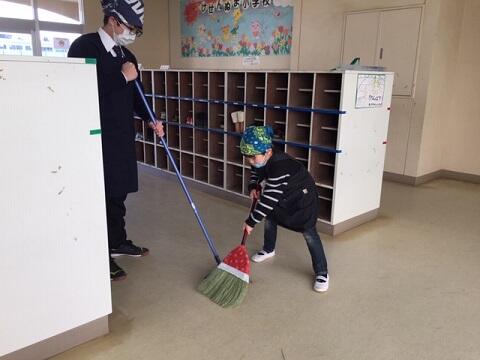 広い校舎を1年生から6年生まで,教職員も一緒に掃除をします。学校生活の中で短い時間ですが,掃除を通して学ぶことがたくさんあります。