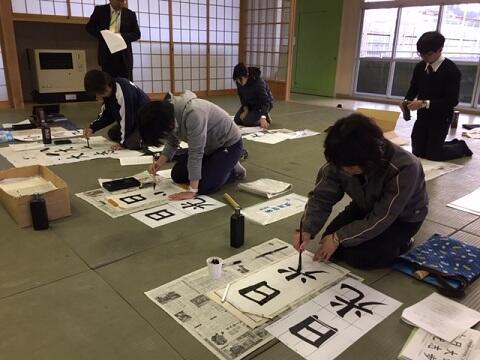 書きぞめの指導を行う上で大切なポイントを教えていただきました。12月になると始まる書きぞめ練習に向け,よい研修になりました。