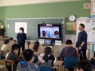 本校では,これまで気仙沼で働くインドネシアの方やインドネシア・アチェ州の小学校と交流を重ねてきており,インドネシアはとても親近感のある国です。今回は,本校の5,6年生が株式会社ミヤカンで働いているインドネシア人のミラさんとオンラインで交流しました。ミラさんからは,バディックというインドネシアの布を紹介していただき,5年生からは,「初詣に行きますか」「好きな食べ物は何ですか」などと質問するなど,互いに文化の違いについて理解を深めることができました。2月8日には,インドネシア・アチェ州の小学校とオンライン交流を行う予定です。