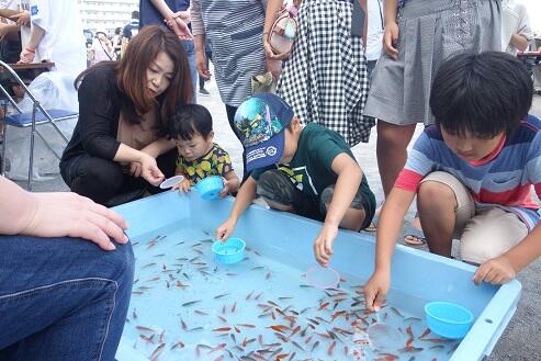 ステージではたくさんのショーが繰り広げられ,南郷地区の子どもたちによる太鼓演奏もありました。地域の方々が行う金魚すくい,流しそうめんに子どもたちの笑顔がありました。