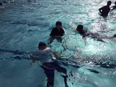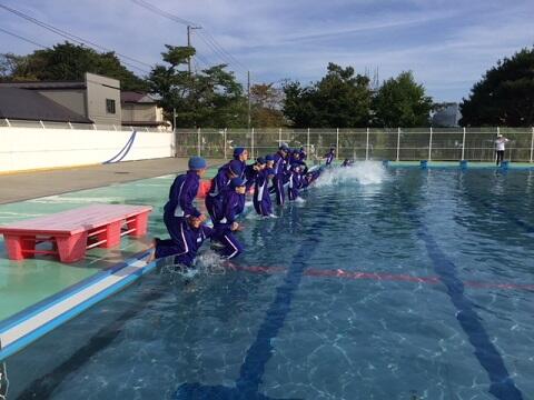 今年度のプールの季節も今日で終わりです。4・5・6年生は,着衣泳を行いました。服を着たまま,泳ぐことの大変さ,万一そのようになったときに衣服に空気をためて浮いて待つことの大切さ,溺れている人を救うために空のペットボトルを投げるときの方法などを体験しました。