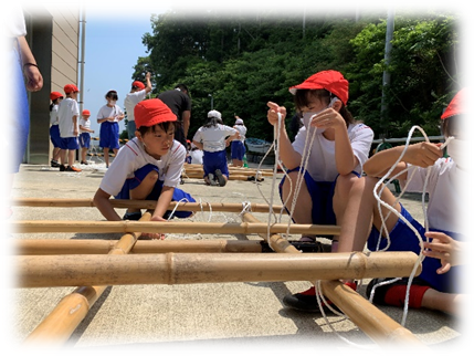 6月15日(火)に4年生が志津川青少年自然の家へ行きました。この日は,天候にも恵まれ,晴天のもと,自分たちで作った筏で海に出たり,水上バイクで引かれるバナナボートに乗ったりするなど,楽しい思い出がたくさんできました。