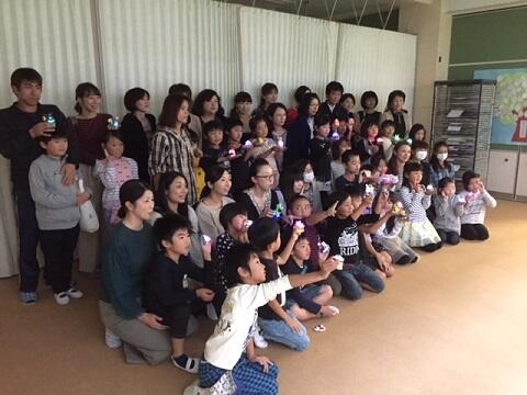 最後は作品を持って記念撮影。光り輝くランタンに子どもたちは大喜びでした。