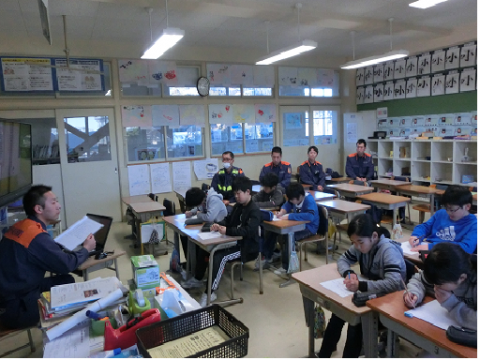 今年度最後の「防災クラブ」の活動は、気仙沼消防署古町出張所の署員の方を講師にお迎えして行いました。