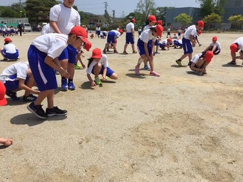 閉会式の練習では,成績発表,表彰の練習も行い,自分たちが優勝したなら……と仮定の練習でしたが,しっかりと取り組むことができました。練習後は,校庭の石拾いを全校で行いました。