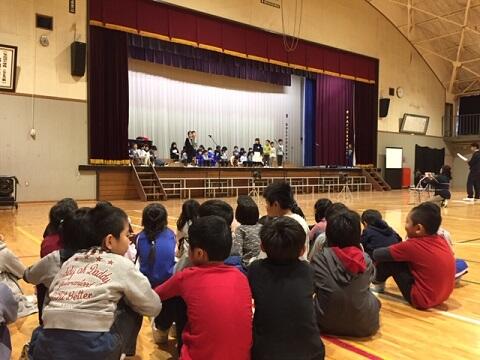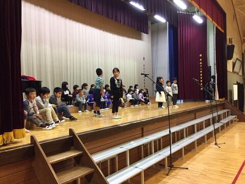 1年生の子どもたちが取り組んでいるのは「じゅげむ」です。体育館での練習では,立ち位置や動きなどを子どもたちが考えながら楽しそうに練習しています。そして,練習を終えた2年生の子どもたちが,1年生の子どもたちの演技を見て,温かい拍手を送っていました。 それにしても,「じゅげむ・じゅげむ・・・」の長い名前をしっかりと言える1年生の子どもたちは,さすがです!