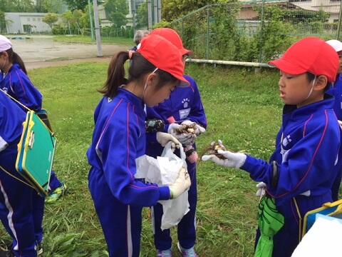 いよいよ,スイセンの掘り起こしです。移植ベラで掘り起こしたスイセンの球根は,大きく育っていました。ひとつひとつに分け,図書館脇の「桜の小路」に移動し,植える場所を考えます。日当たりや図書館に来た時に見える場所はどこかなど,子どもたちなりに植える場所を考えていました。