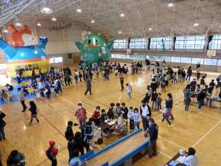 10月22日(日)に,気仙沼小学校父母教師会主催の「気小まつり」が4年ぶりに本校体育館で行われました。今回は,卒業後同じ気仙沼中学校に進学する九条小学校の子供たちも招待し,交流を深めました。「気小まつり」の開催は4年ぶりということもあり,企画・運営は大変でしたが,気仙沼小学校父母教師会の本部役員,文化部員,有志で御協力をいただいた保護者の皆様の「子供たちに楽しい思い出をつくってあげたい」という熱い思いで開催することができた「気小まつり」は大盛況でした。