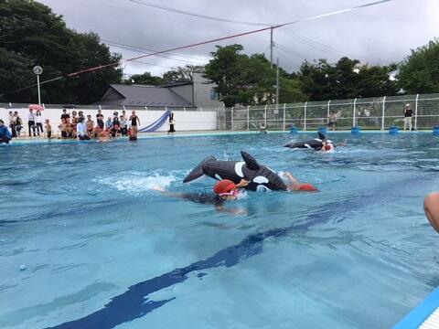 3・4年生の中学年は,長い距離を泳げるようになった子が多く,これまでの水泳学習の成果を存分に発揮していました。シャチライダーを使ったリレーは,シャチがひっくり返らないよう二人で力を合わせて泳いだり引っ張ったりしました。