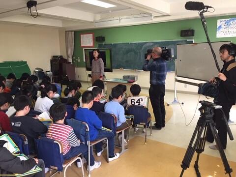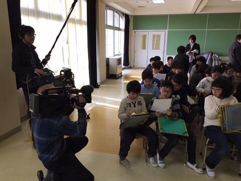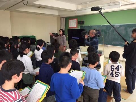 6年生の子どもたちが歌ってきた「しあわせ運べるように」の練習風景の取材です。被災地である神戸,気仙沼,福島,山古志,熊本などで取材を行うそうです。