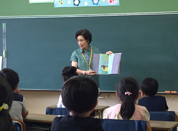 読み聞かせをしてくださっている「あいの会」の皆様,ありがとうございます。