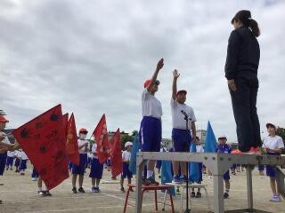 1・2年生の「ジャンボリーミッキー2023」,3・4年生の「つなげ!気小ハリケーン」,5・6年の「心を一つに flag dance」など,子供たちは力の限り走ったり,踊ったりと頑張ることができました。また,今年は開閉会式で運動会の歌や校歌を歌ったり,みんなで元気に声を出して応援合戦を行ったりと,活気のある運動会となりました。