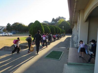 10月28日は,気仙沼中学校と合同で有事を想定しての引渡し訓練を実施しました。児童は,訓練を意識して静かに落ち着いて行動することができました。保護者様は,引渡しの要領を得て,必要な手続きを済ませて児童を引き取っていました。学校と学校及び,学校と家庭が連携する今回の訓練を通して,更に防災意識を高めました。